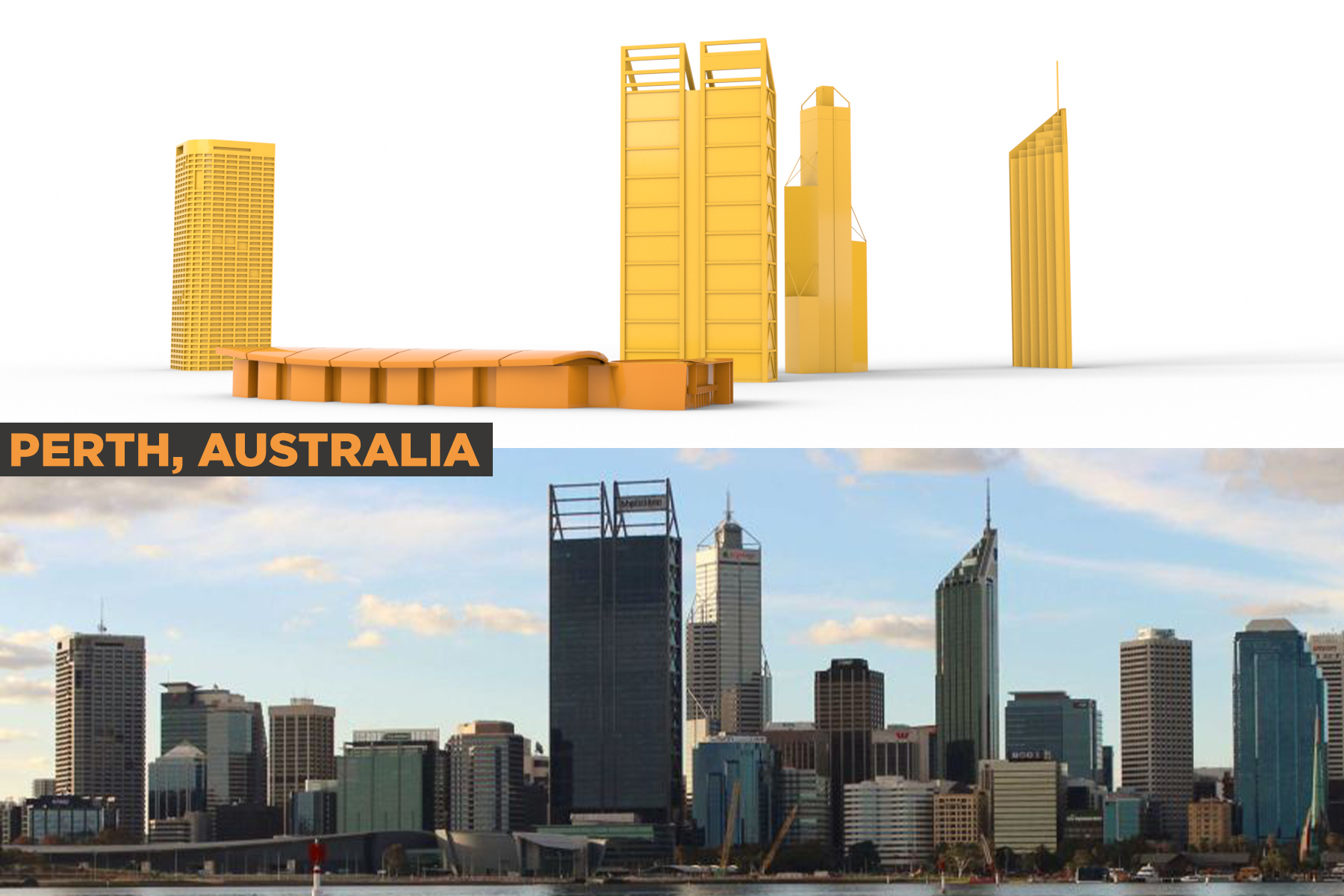 To recreate the Perth skyline, I custom modeled PCEC and several iconic skyscrapers. Stock models were used to fill in the city.